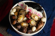 成 份:鮑魚、海參、香菇、紅棗、排骨、豬肚、鳥蛋、芋頭、栗子, 魚板